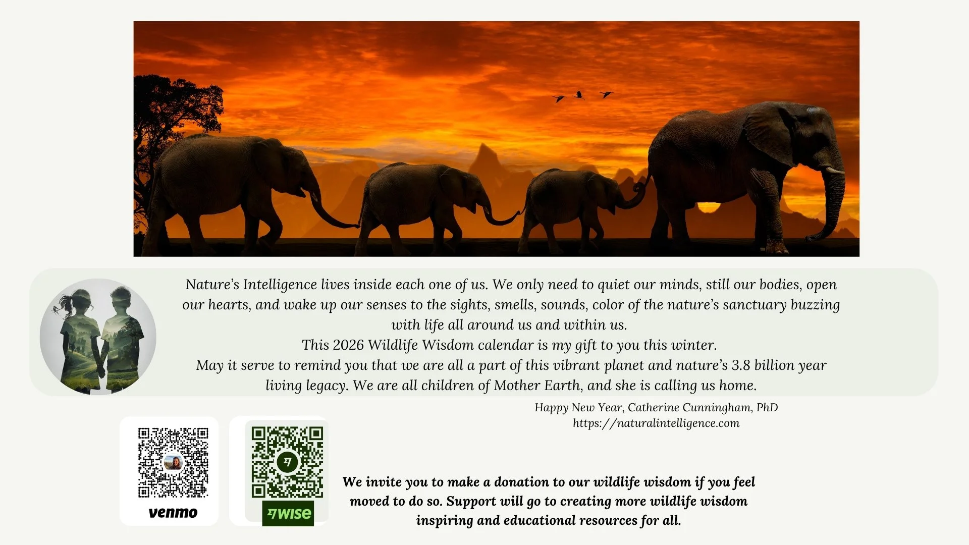 Subscriptions come with a secret link to our nature sanctuary where wildlife wisdom lives. Subscribe now to begin your journey in January 2026 to awaken your natural intelligence.